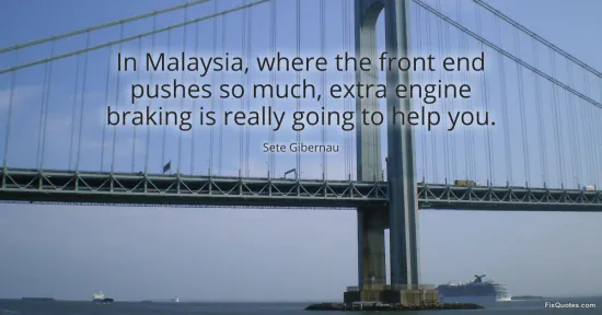 Gibernau, Sete. "In Malaysia, where the front end pushes so much, extra engine braking is really going to help you." FixQuotes. February 16, 2026. https://fixquotes.com/quotes/in-malaysia-where-the-front-end-pushes-so-much-106847/.