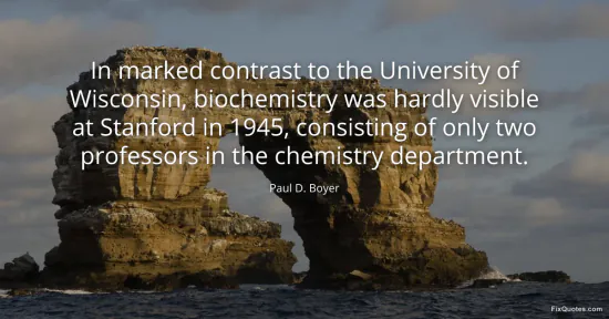 Boyer, Paul D. "In marked contrast to the University of Wisconsin, biochemistry was hardly visible at Stanford in 1945, consisting of only two professors in the chemistry department." FixQuotes. February 16, 2026. https://fixquotes.com/quotes/in-marked-contrast-to-the-university-of-wisconsin-121043/.