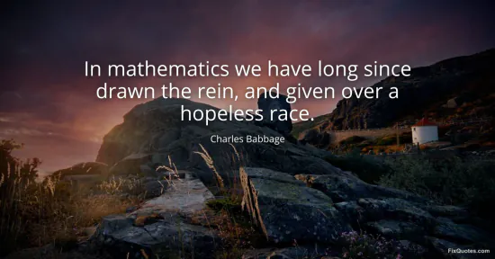 Babbage, Charles. "In mathematics we have long since drawn the rein, and given over a hopeless race." FixQuotes. January 15, 2026. https://fixquotes.com/quotes/in-mathematics-we-have-long-since-drawn-the-rein-20109/.