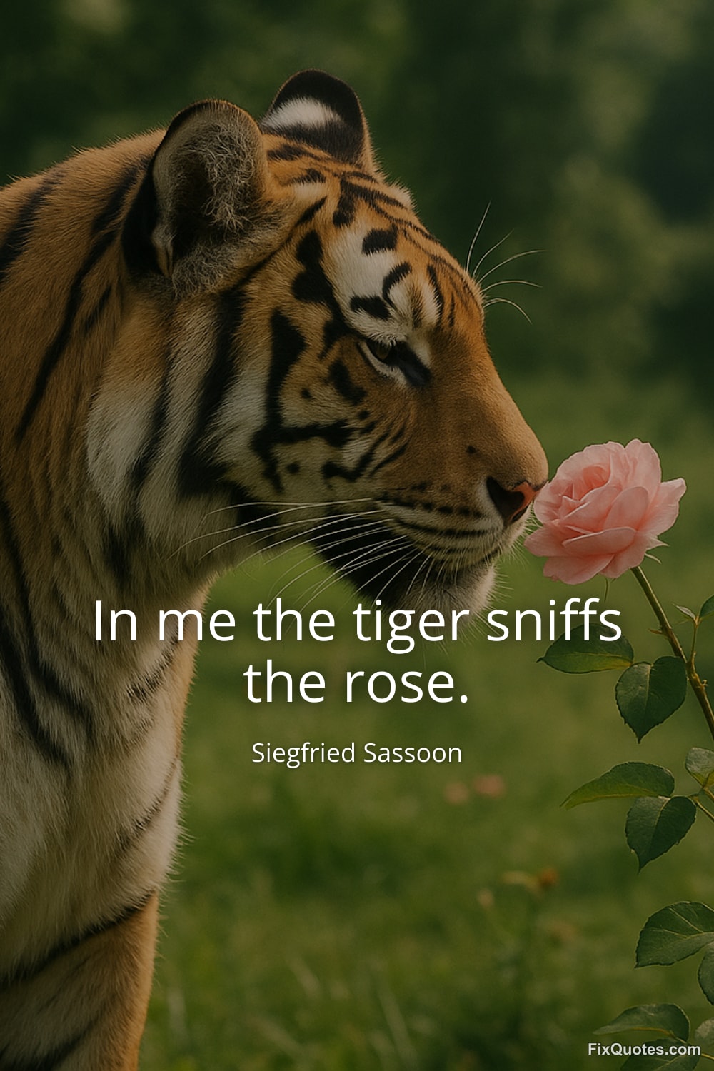 Sassoon, Siegfried. (2026, January 13). In me the tiger sniffs the rose. FixQuotes. https://fixquotes.com/quotes/in-me-the-tiger-sniffs-the-rose-81476/