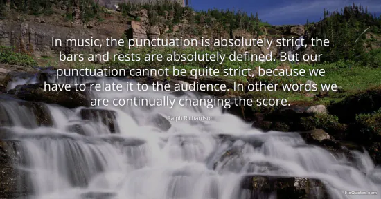 Richardson, Ralph. (2026, January 16). In music, the punctuation is absolutely strict, the bars and rests are absolutely defined. But our punctuation cannot be quite strict, because we have to relate it to the audience. In other words we are continually changing the score. FixQuotes. https://fixquotes.com/quotes/in-music-the-punctuation-is-absolutely-strict-the-136535/
