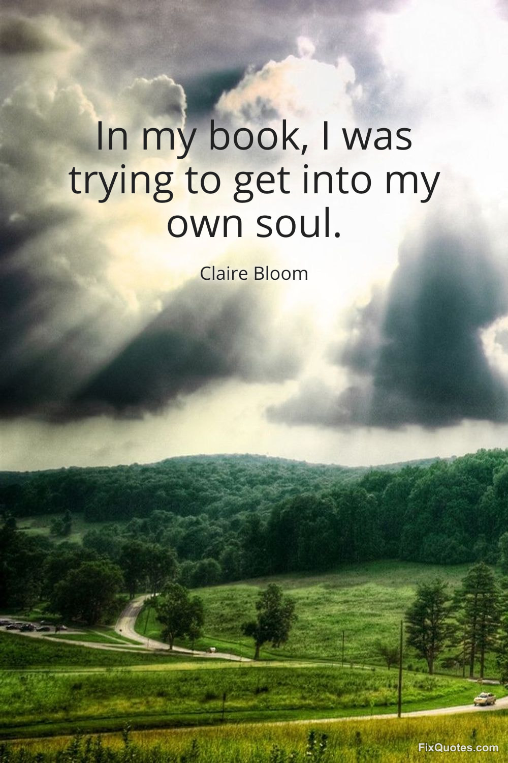 Bloom, Claire. "In my book, I was trying to get into my own soul." FixQuotes. January 15, 2026. https://fixquotes.com/quotes/in-my-book-i-was-trying-to-get-into-my-own-soul-141693/.