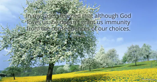"In my case, I learned that although God loves us, he doesn't grant us immunity from the consequences of our choices"