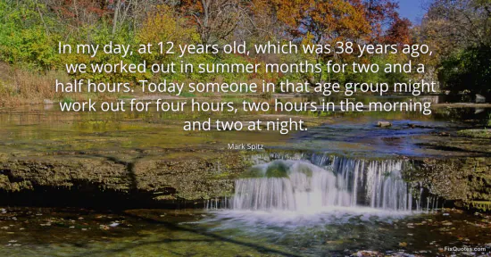 Spitz, Mark. (2026, January 15). In my day, at 12 years old, which was 38 years ago, we worked out in summer months for two and a half hours. Today someone in that age group might work out for four hours, two hours in the morning and two at night. FixQuotes. https://fixquotes.com/quotes/in-my-day-at-12-years-old-which-was-38-years-ago-162442/