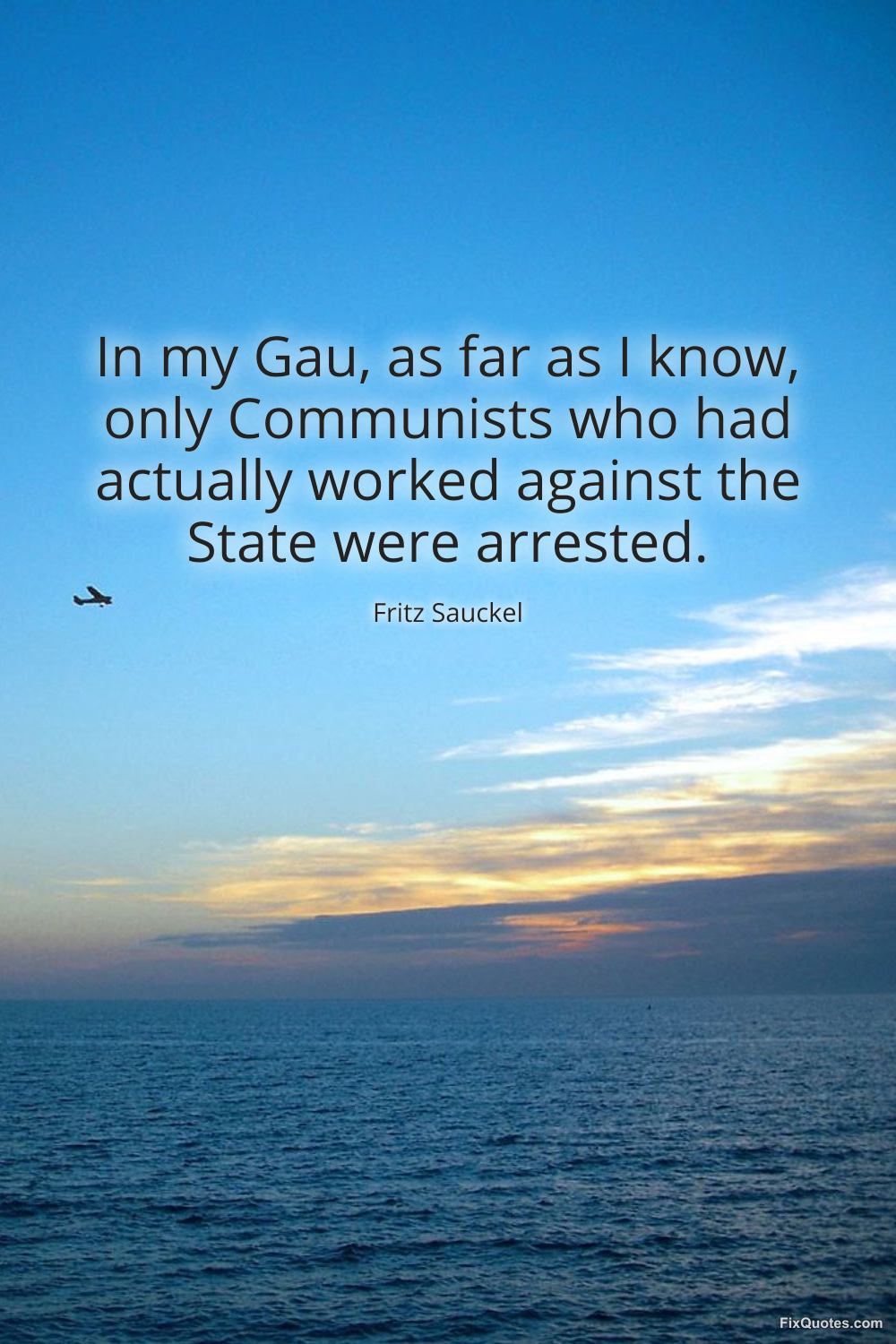 "In my Gau, as far as I know, only Communists who had actually worked against the State were arrested." FixQuotes, 17 Jan. 2026, https://fixquotes.com/quotes/in-my-gau-as-far-as-i-know-only-communists-who-57654/. Accessed 5 Apr. 2026.