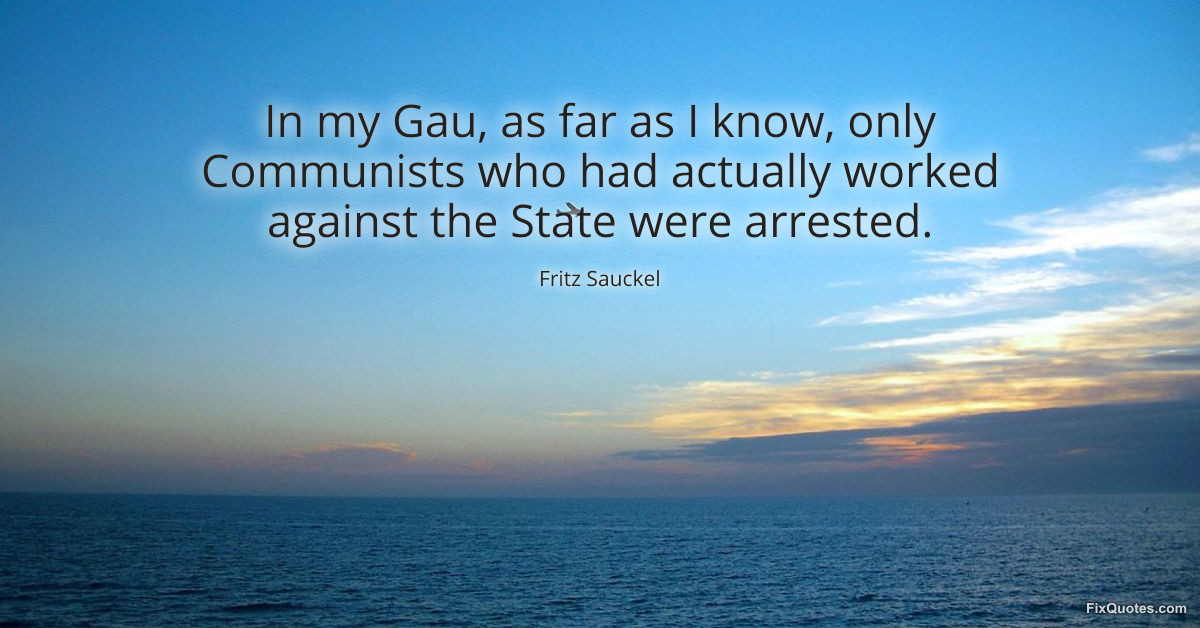 Sauckel, Fritz. (2026, January 17). In my Gau, as far as I know, only Communists who had actually worked against the State were arrested. FixQuotes. https://fixquotes.com/quotes/in-my-gau-as-far-as-i-know-only-communists-who-57654/