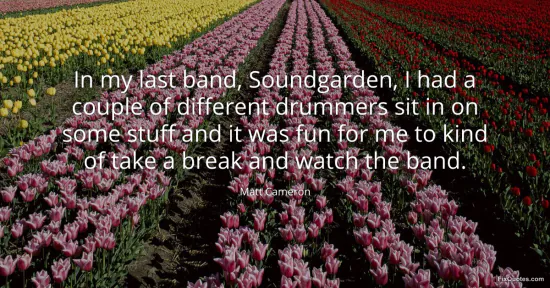 Cameron, Matt. "In my last band, Soundgarden, I had a couple of different drummers sit in on some stuff and it was fun for me to kind of take a break and watch the band." FixQuotes. January 17, 2026. https://fixquotes.com/quotes/in-my-last-band-soundgarden-i-had-a-couple-of-56786/.