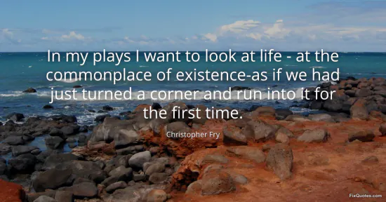 Fry, Christopher. "In my plays I want to look at life - at the commonplace of existence-as if we had just turned a corner and run into it for the first time." FixQuotes. January 16, 2026. https://fixquotes.com/quotes/in-my-plays-i-want-to-look-at-life-at-the-139477/.