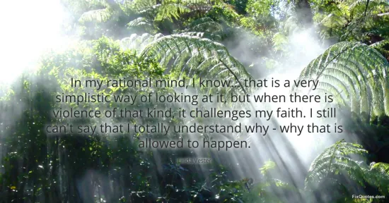 "In my rational mind, I know... that is a very simplistic way of looking at it, but when there is violence of that kind, it challenges my faith. I still can't say that I totally understand why - why that is allowed to happen." FixQuotes, 18 Jan. 2026, https://fixquotes.com/quotes/in-my-rational-mind-i-know-that-is-a-very-19127/. Accessed 18 Feb. 2026.