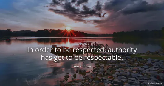 Robbins, Tom. "In order to be respected, authority has got to be respectable." FixQuotes. January 17, 2026. https://fixquotes.com/quotes/in-order-to-be-respected-authority-has-got-to-be-77836/.
