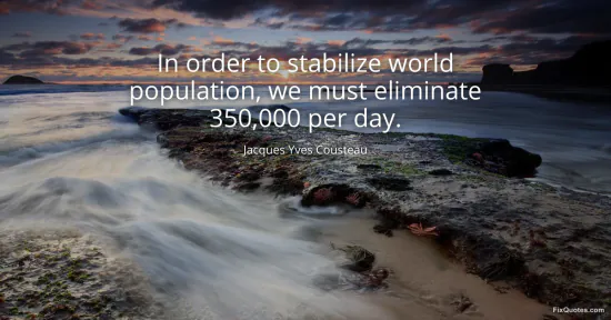 Cousteau, Jacques Yves. (2026, January 13). In order to stabilize world population, we must eliminate 350,000 per day. FixQuotes. https://fixquotes.com/quotes/in-order-to-stabilize-world-population-we-must-18815/