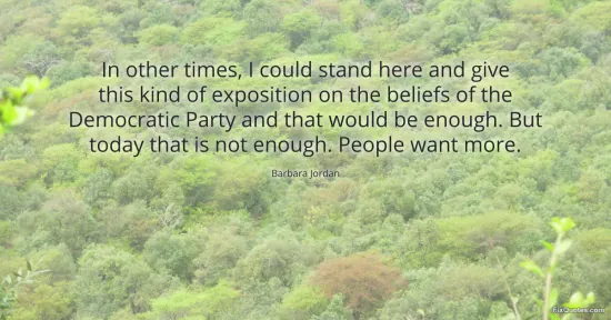 Jordan, Barbara. "In other times, I could stand here and give this kind of exposition on the beliefs of the Democratic Party and that would be enough. But today that is not enough. People want more." FixQuotes. January 16, 2026. https://fixquotes.com/quotes/in-other-times-i-could-stand-here-and-give-this-138058/.