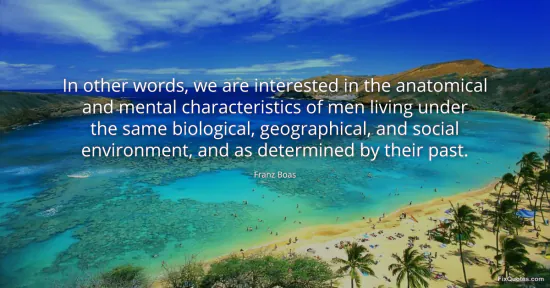 Boas, Franz. (2026, January 17). In other words, we are interested in the anatomical and mental characteristics of men living under the same biological, geographical, and social environment, and as determined by their past. FixQuotes. https://fixquotes.com/quotes/in-other-words-we-are-interested-in-the-70558/