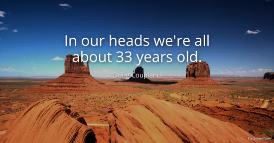 Coupland, Doug. "In our heads we're all about 33 years old." FixQuotes. January 17, 2026. https://fixquotes.com/quotes/in-our-heads-were-all-about-33-years-old-55921/.
