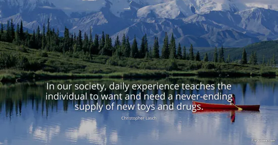 Lasch, Christopher. (2026, January 17). In our society, daily experience teaches the individual to want and need a never-ending supply of new toys and drugs. FixQuotes. https://fixquotes.com/quotes/in-our-society-daily-experience-teaches-the-43921/