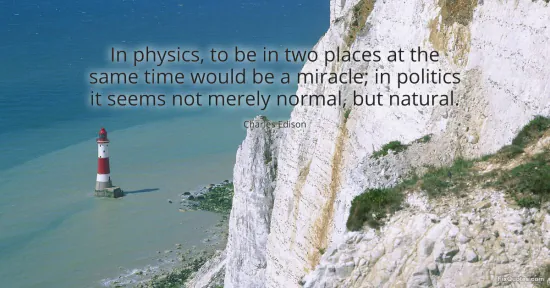 Edison, Charles. (2026, January 16). In physics, to be in two places at the same time would be a miracle; in politics it seems not merely normal, but natural. FixQuotes. https://fixquotes.com/quotes/in-physics-to-be-in-two-places-at-the-same-time-87428/
