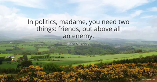 Mulroney, Brian. (2026, January 17). In politics, madame, you need two things: friends, but above all an enemy. FixQuotes. https://fixquotes.com/quotes/in-politics-madame-you-need-two-things-friends-38610/