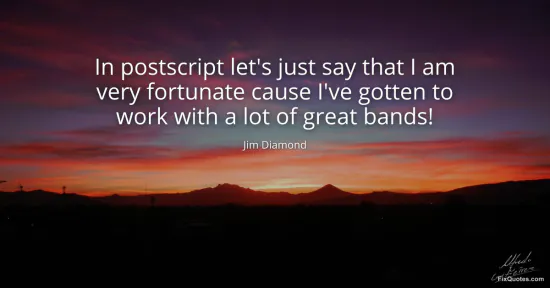 Diamond, Jim. "In postscript let's just say that I am very fortunate cause I've gotten to work with a lot of great bands!" FixQuotes. January 17, 2026. https://fixquotes.com/quotes/in-postscript-lets-just-say-that-i-am-very-50843/.