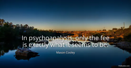Cooley, Mason. "In psychoanalysis, only the fee is exactly what it seems to be." FixQuotes. January 15, 2026. https://fixquotes.com/quotes/in-psychoanalysis-only-the-fee-is-exactly-what-it-100312/.