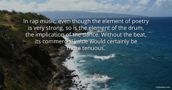 Shepp, Archie. "In rap music, even though the element of poetry is very strong, so is the element of the drum, the implication of the dance. Without the beat, its commercial value would certainly be more tenuous." FixQuotes. January 16, 2026. https://fixquotes.com/quotes/in-rap-music-even-though-the-element-of-poetry-is-137859/.
