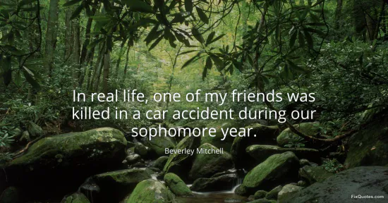 Mitchell, Beverley. "In real life, one of my friends was killed in a car accident during our sophomore year." FixQuotes. January 15, 2026. https://fixquotes.com/quotes/in-real-life-one-of-my-friends-was-killed-in-a-161110/.