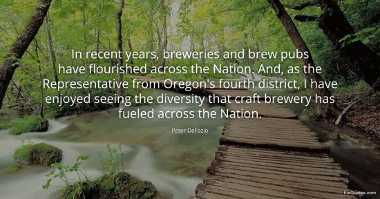 DeFazio, Peter. (2026, January 15). In recent years, breweries and brew pubs have flourished across the Nation. And, as the Representative from Oregon's fourth district, I have enjoyed seeing the diversity that craft brewery has fueled across the Nation. FixQuotes. https://fixquotes.com/quotes/in-recent-years-breweries-and-brew-pubs-have-143488/