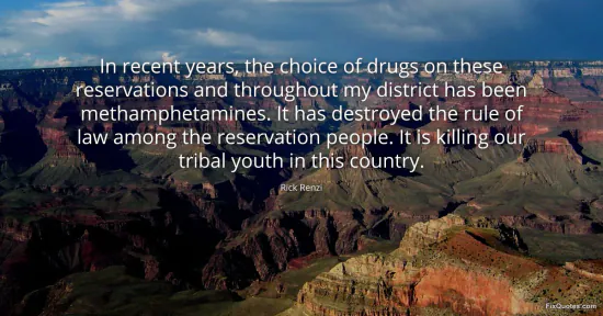 Renzi, Rick. (2026, January 15). In recent years, the choice of drugs on these reservations and throughout my district has been methamphetamines. It has destroyed the rule of law among the reservation people. It is killing our tribal youth in this country. FixQuotes. https://fixquotes.com/quotes/in-recent-years-the-choice-of-drugs-on-these-145005/
