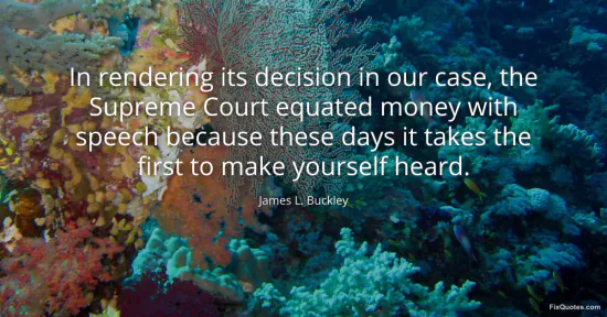 Buckley, James L. "In rendering its decision in our case, the Supreme Court equated money with speech because these days it takes the first to make yourself heard." FixQuotes. January 17, 2026. https://fixquotes.com/quotes/in-rendering-its-decision-in-our-case-the-supreme-79486/.