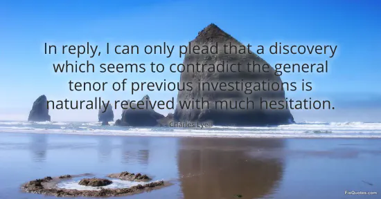Lyell, Charles. "In reply, I can only plead that a discovery which seems to contradict the general tenor of previous investigations is naturally received with much hesitation." FixQuotes. January 17, 2026. https://fixquotes.com/quotes/in-reply-i-can-only-plead-that-a-discovery-which-48469/.