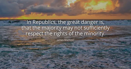 Madison, James. "In Republics, the great danger is, that the majority may not sufficiently respect the rights of the minority." FixQuotes. January 15, 2026. https://fixquotes.com/quotes/in-republics-the-great-danger-is-that-the-23862/.