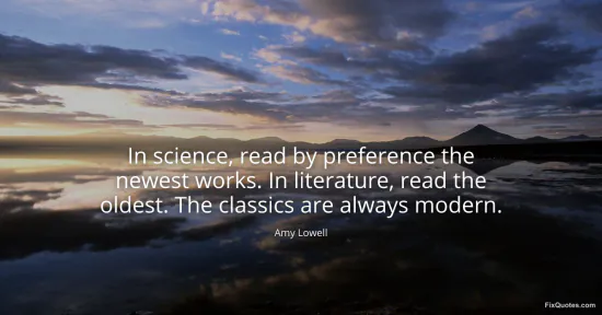 Lowell, Amy. "In science, read by preference the newest works. In literature, read the oldest. The classics are always modern." FixQuotes. January 17, 2026. https://fixquotes.com/quotes/in-science-read-by-preference-the-newest-works-in-60966/.