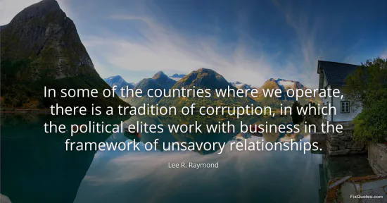 Raymond, Lee R. (2026, January 16). In some of the countries where we operate, there is a tradition of corruption, in which the political elites work with business in the framework of unsavory relationships. FixQuotes. https://fixquotes.com/quotes/in-some-of-the-countries-where-we-operate-there-119186/
