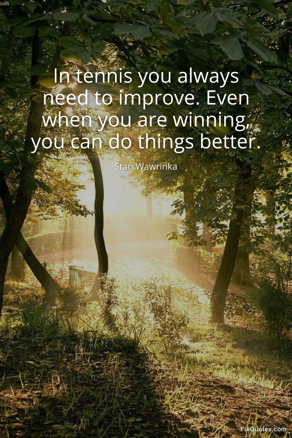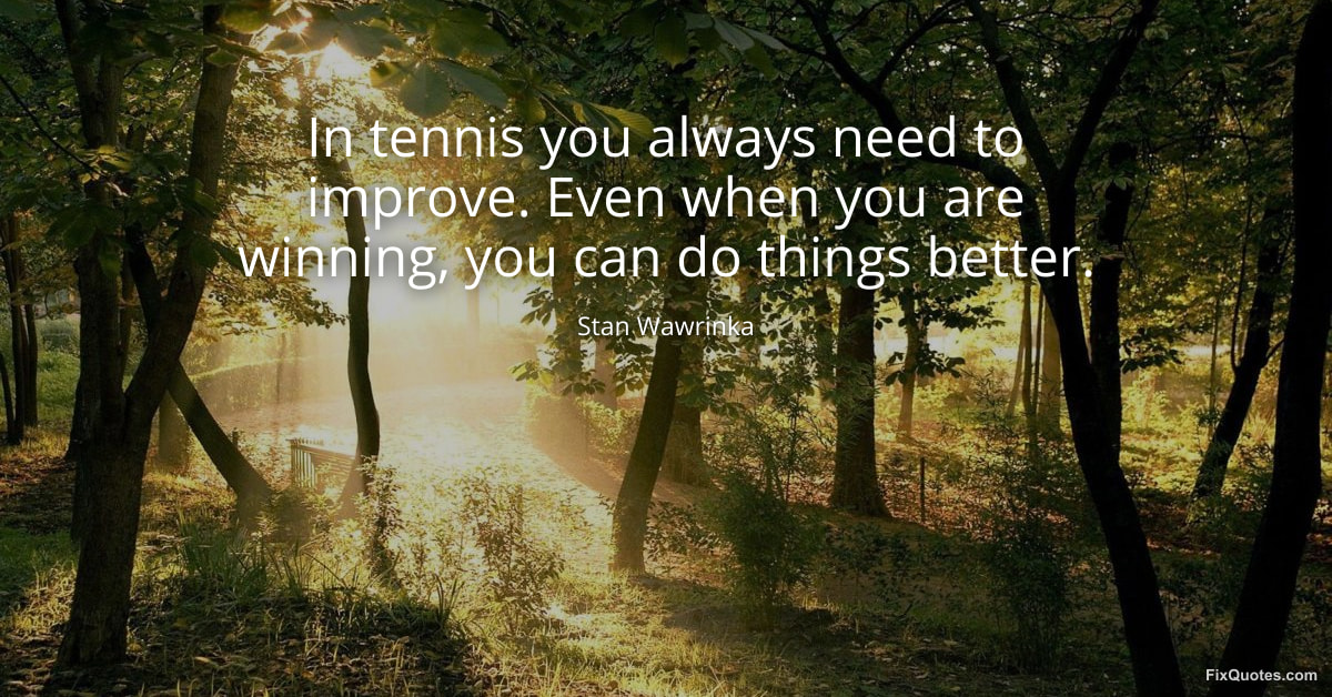 Wawrinka, Stan. (2026, January 25). In tennis you always need to improve. Even when you are winning, you can do things better. FixQuotes. https://fixquotes.com/quotes/in-tennis-you-always-need-to-improve-even-when-184240/