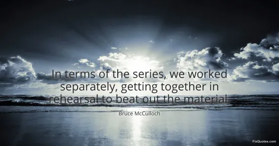 McCulloch, Bruce. (2026, January 17). In terms of the series, we worked separately, getting together in rehearsal to beat out the material. FixQuotes. https://fixquotes.com/quotes/in-terms-of-the-series-we-worked-separately-45105/