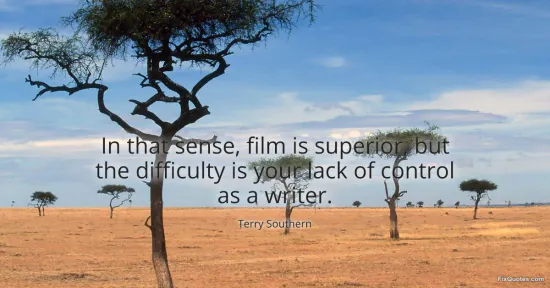 Southern, Terry. "In that sense, film is superior, but the difficulty is your lack of control as a writer." FixQuotes. January 15, 2026. https://fixquotes.com/quotes/in-that-sense-film-is-superior-but-the-difficulty-96663/.