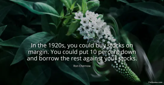 Chernow, Ron. "In the 1920s, you could buy stocks on margin. You could put 10 percent down and borrow the rest against your stocks." FixQuotes. February 17, 2026. https://fixquotes.com/quotes/in-the-1920s-you-could-buy-stocks-on-margin-you-102818/.