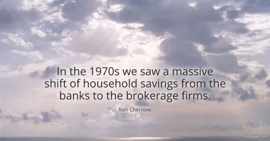 Chernow, Ron. "In the 1970s we saw a massive shift of household savings from the banks to the brokerage firms." FixQuotes. January 15, 2026. https://fixquotes.com/quotes/in-the-1970s-we-saw-a-massive-shift-of-household-152217/.