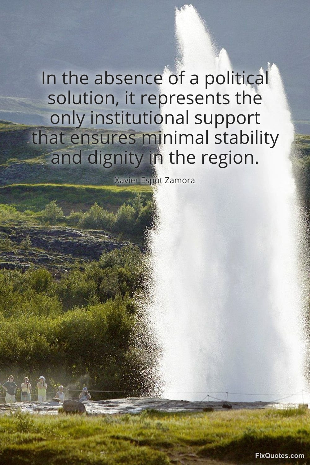 Zamora, Xavier Espot. (2026, February 15). In the absence of a political solution, it represents the only institutional support that ensures minimal stability and dignity in the region. FixQuotes. https://fixquotes.com/quotes/in-the-absence-of-a-political-solution-it-185348/