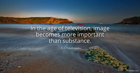 Hayakawa, S. I. "In the age of television, image becomes more important than substance." FixQuotes. January 15, 2026. https://fixquotes.com/quotes/in-the-age-of-television-image-becomes-more-109406/.
