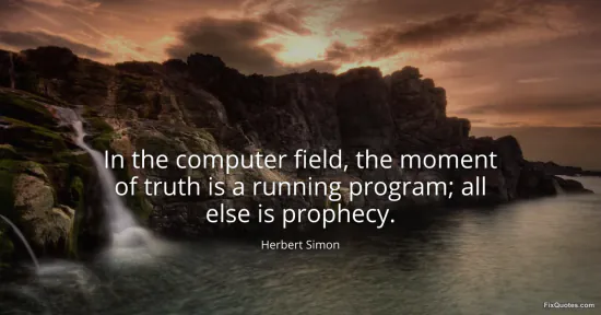 Simon, Herbert. "In the computer field, the moment of truth is a running program; all else is prophecy." FixQuotes. January 17, 2026. https://fixquotes.com/quotes/in-the-computer-field-the-moment-of-truth-is-a-69350/.