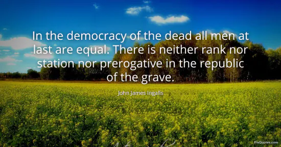 Ingalls, John James. (2026, January 15). In the democracy of the dead all men at last are equal. There is neither rank nor station nor prerogative in the republic of the grave. FixQuotes. https://fixquotes.com/quotes/in-the-democracy-of-the-dead-all-men-at-last-are-170657/