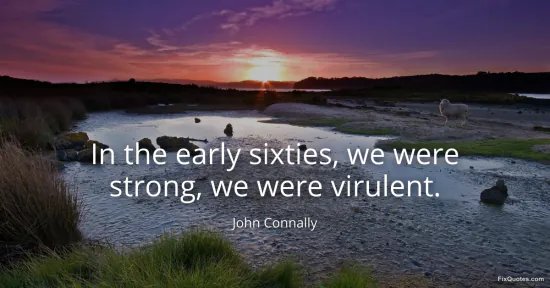 Connally, John. "In the early sixties, we were strong, we were virulent." FixQuotes. January 16, 2026. https://fixquotes.com/quotes/in-the-early-sixties-we-were-strong-we-were-123995/.