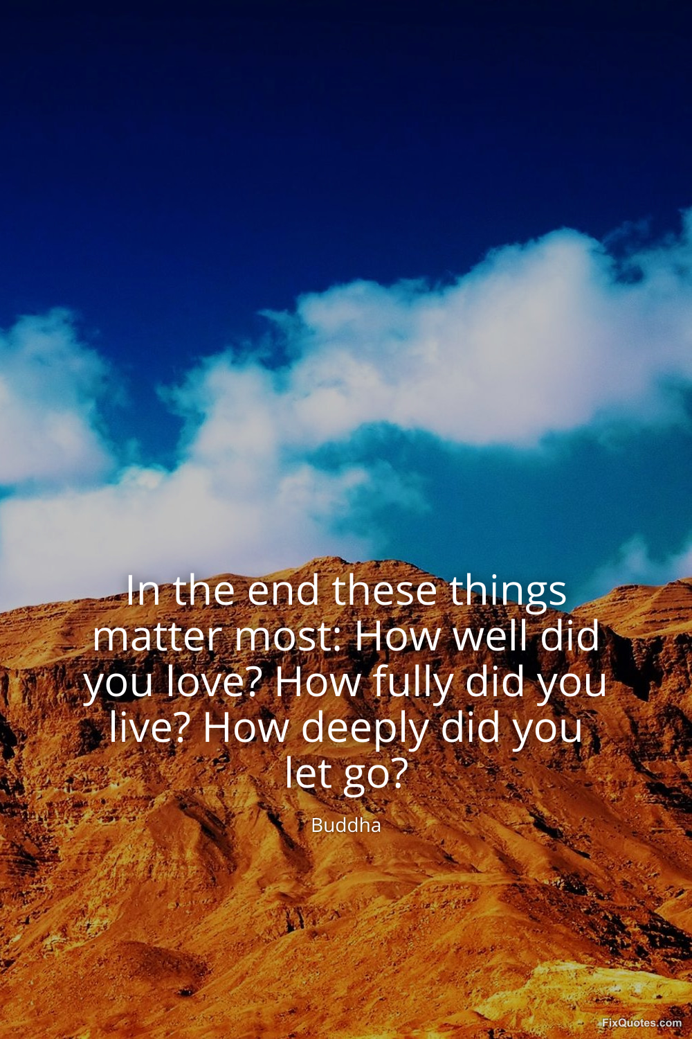 Buddha. (2026, March 10). In the end these things matter most: How well did you love? How fully did you live? How deeply did you let go? FixQuotes. https://fixquotes.com/quotes/in-the-end-these-things-matter-most-how-well-did-185955/