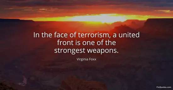 Foxx, Virginia. "In the face of terrorism, a united front is one of the strongest weapons." FixQuotes. January 16, 2026. https://fixquotes.com/quotes/in-the-face-of-terrorism-a-united-front-is-one-of-97867/.