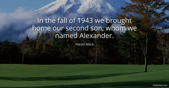 Marx, Harpo. (2026, January 16). In the fall of 1943 we brought home our second son, whom we named Alexander. FixQuotes. https://fixquotes.com/quotes/in-the-fall-of-1943-we-brought-home-our-second-136840/