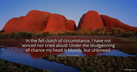 Henley, William Ernest. "In the fell clutch of circumstance, I have not winced nor cried aloud: Under the bludgeoning of chance my head is bloody, but unbowed." FixQuotes. January 15, 2026. https://fixquotes.com/quotes/in-the-fell-clutch-of-circumstance-i-have-not-161001/.
