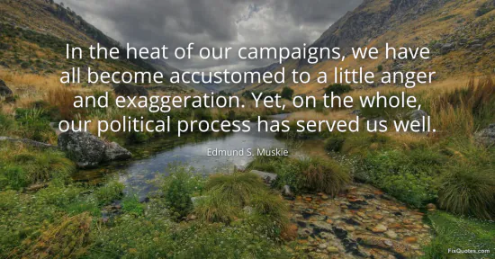 Muskie, Edmund S. "In the heat of our campaigns, we have all become accustomed to a little anger and exaggeration. Yet, on the whole, our political process has served us well." FixQuotes. January 17, 2026. https://fixquotes.com/quotes/in-the-heat-of-our-campaigns-we-have-all-become-69954/.