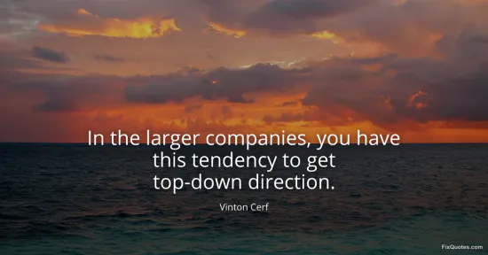 Cerf, Vinton. (2026, January 18). In the larger companies, you have this tendency to get top-down direction. FixQuotes. https://fixquotes.com/quotes/in-the-larger-companies-you-have-this-tendency-to-9699/