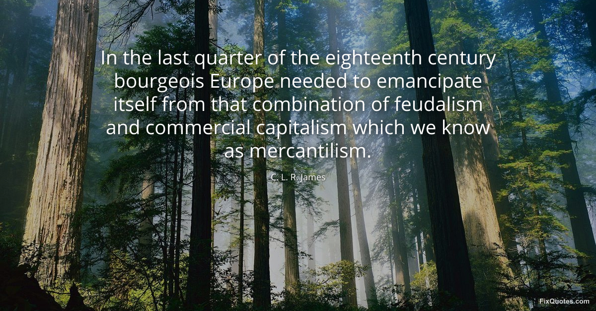 James, C. L. R. (2026, January 17). In the last quarter of the eighteenth century bourgeois Europe needed to emancipate itself from that combination of feudalism and commercial capitalism which we know as mercantilism. FixQuotes. https://fixquotes.com/quotes/in-the-last-quarter-of-the-eighteenth-century-49593/