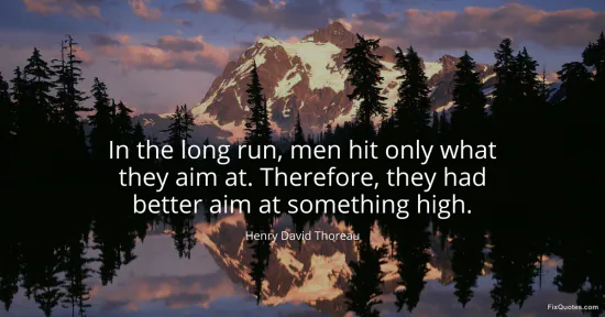 Thoreau, Henry David. "In the long run, men hit only what they aim at. Therefore, they had better aim at something high." FixQuotes. February 8, 2026. https://fixquotes.com/quotes/in-the-long-run-men-hit-only-what-they-aim-at-35767/.